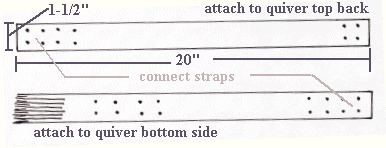 On the right is the quiver mouth, with a twisted pair of laces running from back to front, acting as a compartment separator. There are LOTS of options you can add to this basic, sturdy, very functional back quiver. Customize it as you like!